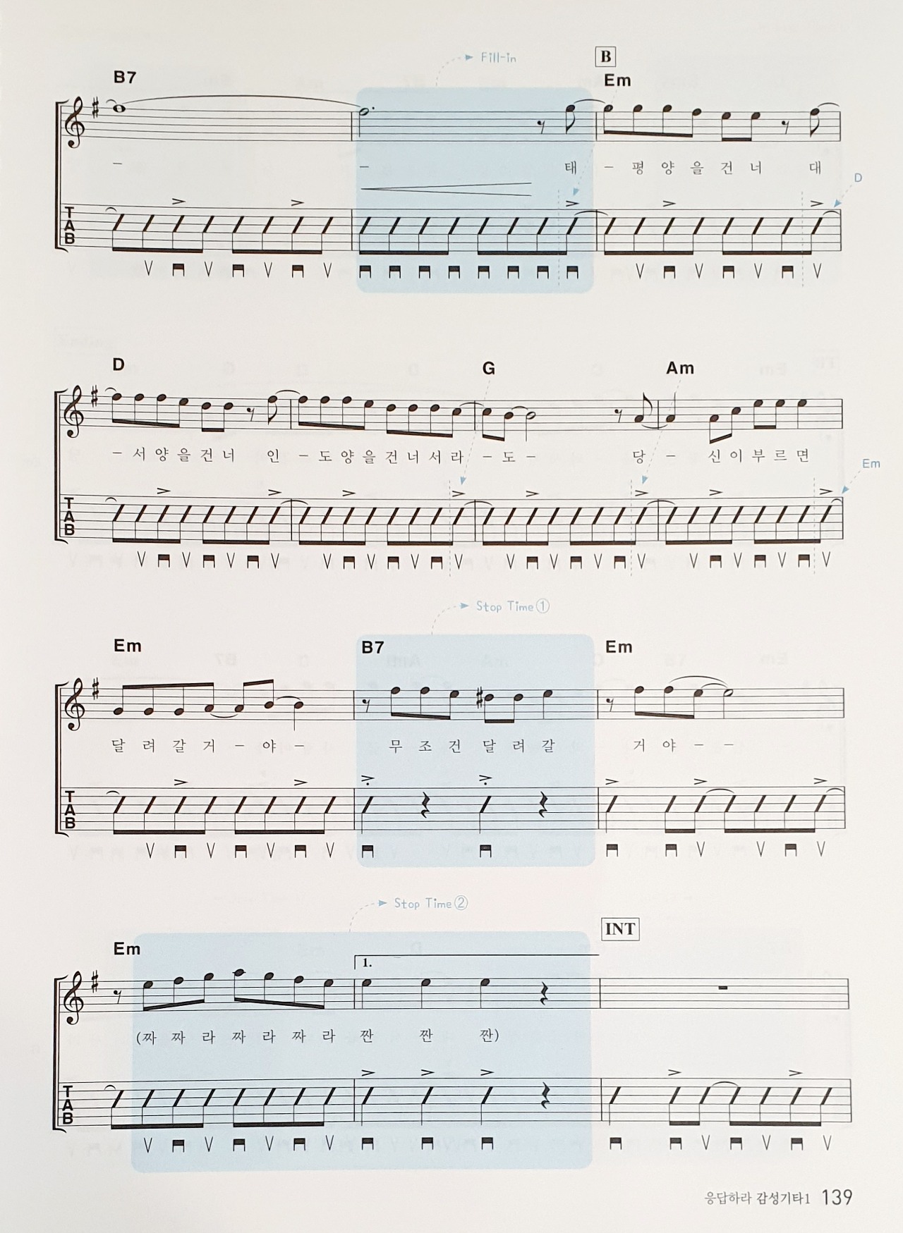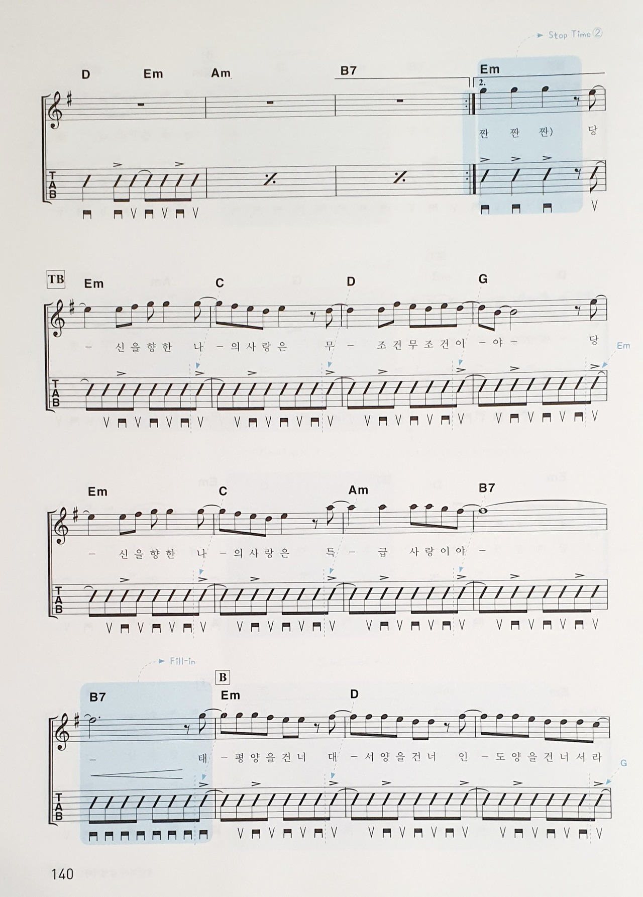 잘되시는 분들은 '응답하라 감성기타 1'에 있는 '무조건'(P.136~141)을 연습해봅시다.