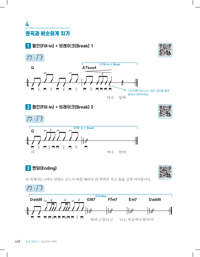 필인과 브레이크, 엔딩을 넣어 원곡과 비슷하게 연주해봅시다.