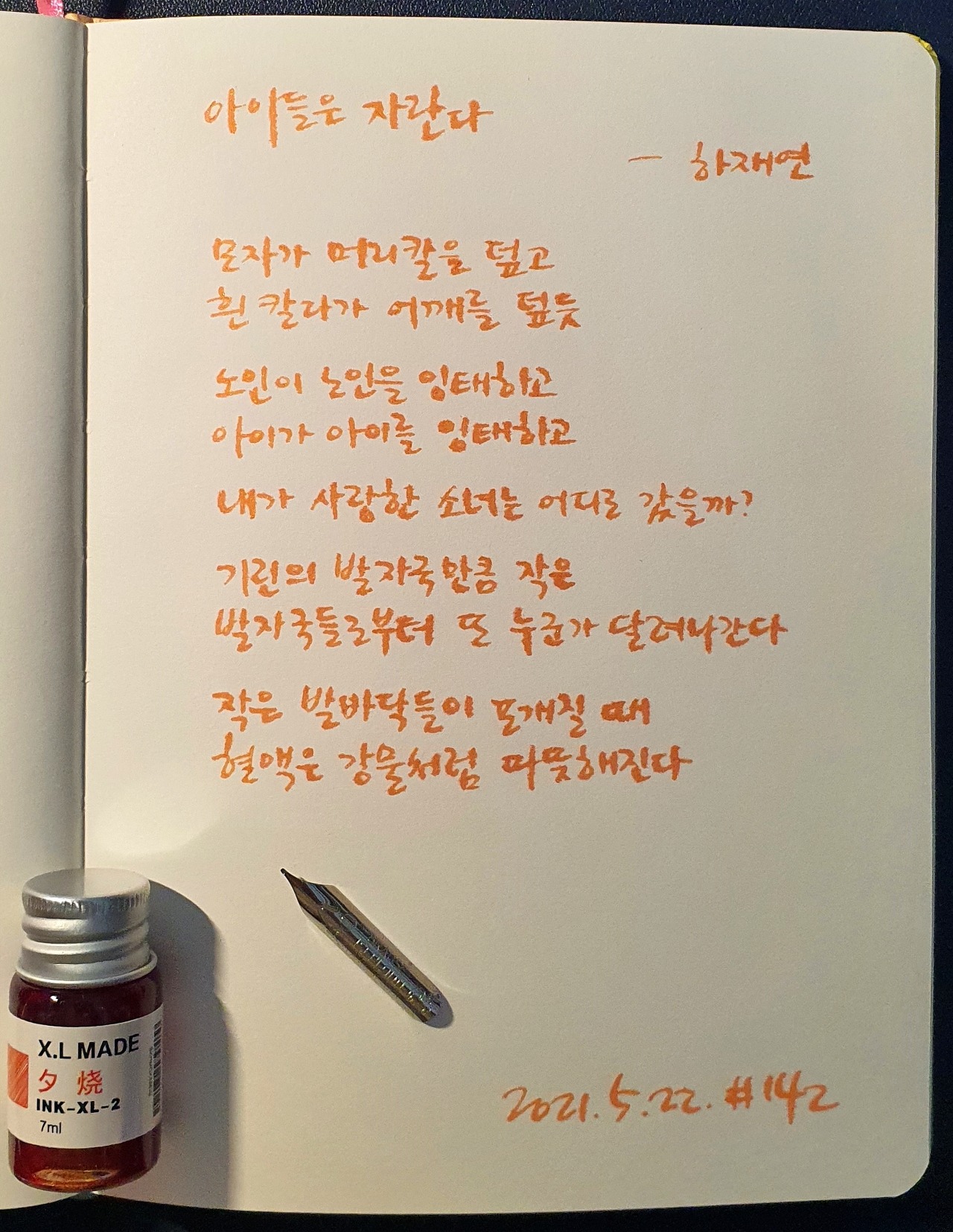 #아이들은자란다 #하재연 #시필사 #닙펜 #딥펜 #펜글씨 #손글씨 #매일시쓰기 #1일1시 #하루에시한편 #이른아침을먹던여름 #thatsummerwithyou