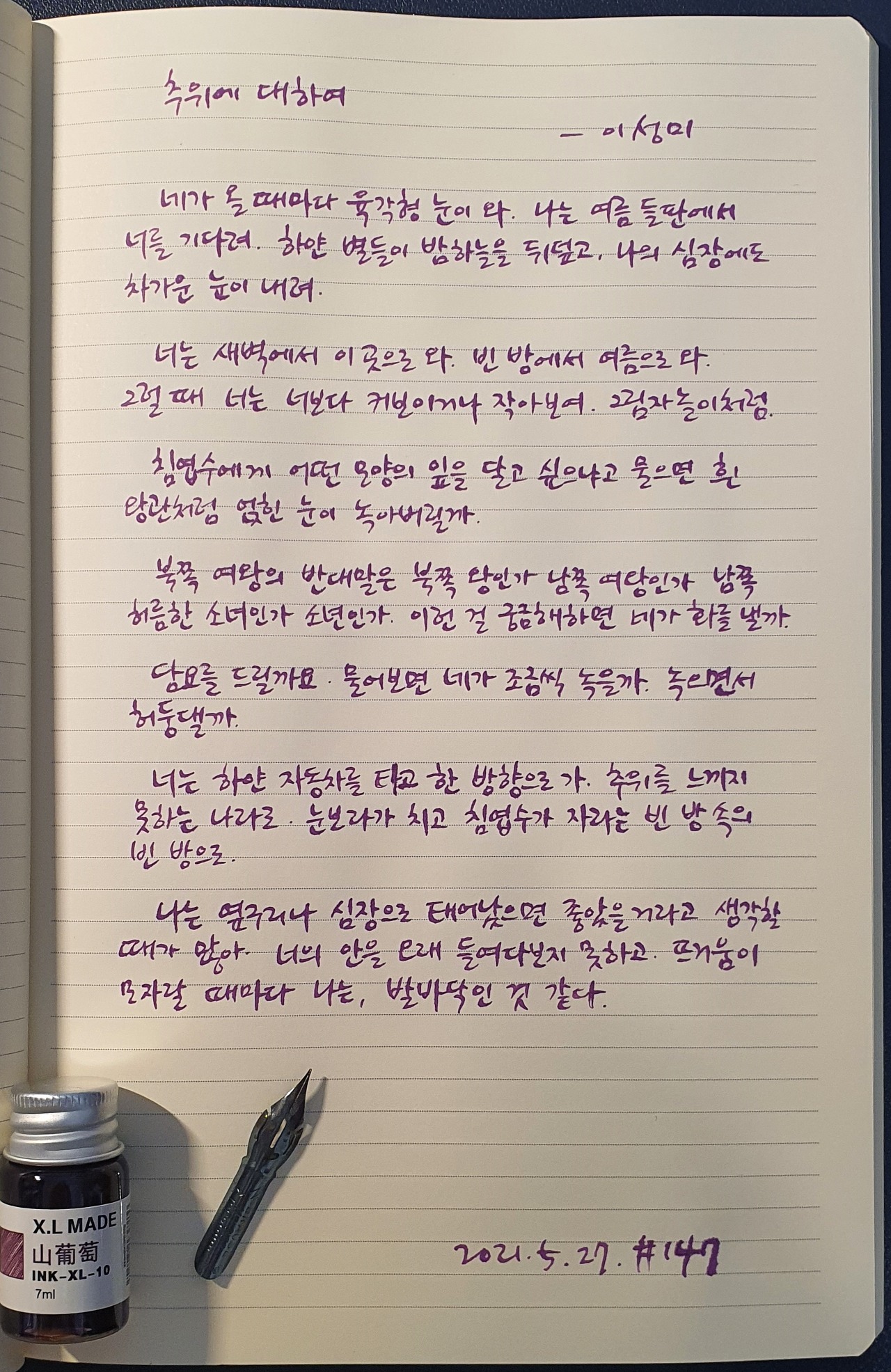#추위에대하여 #이성미 #닙펜 #딥펜 #펜글씨 #손글씨 #시필사 #매일시쓰기 #1일1시 #하루에시한편 #이른아침을먹던여름 #thatsummerwithyou
