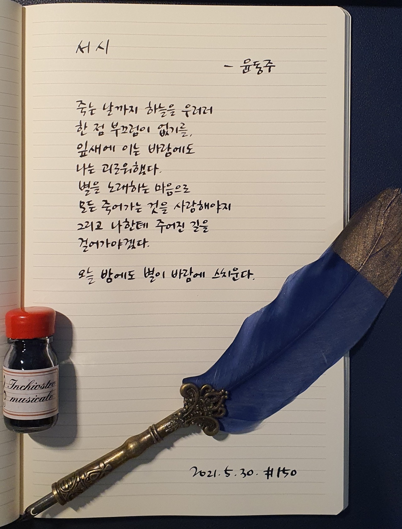 #서시 #윤동주 #시필사 #닙펜 #딥펜 #펜글씨 #손글씨 #매일시쓰기 #1일1시 #하루에시한편 #이른아침을먹던여름 #thatsummerwithyou